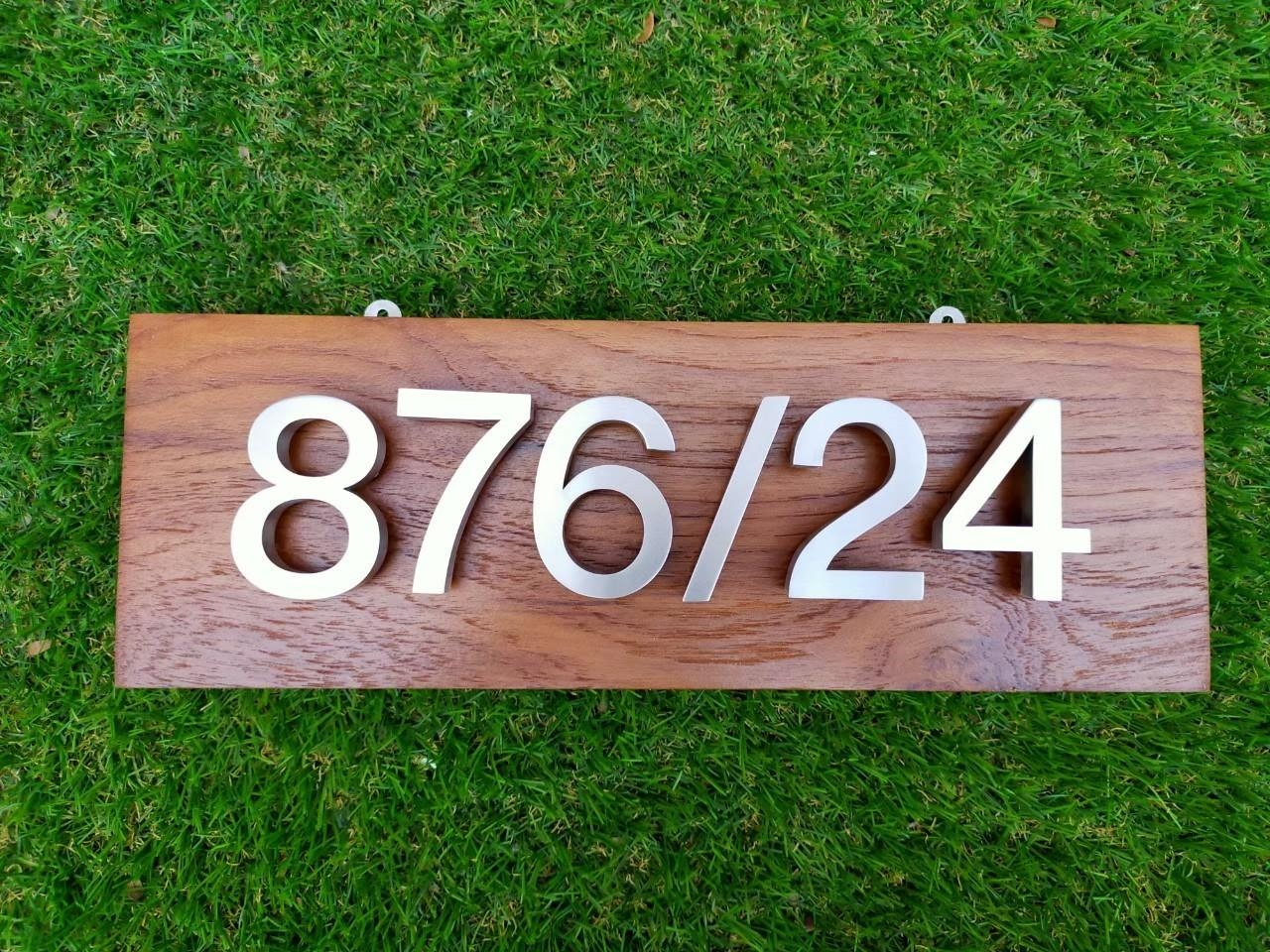 - งานป้ายไม้สัก ฉลุอักษร กัดเรียบ